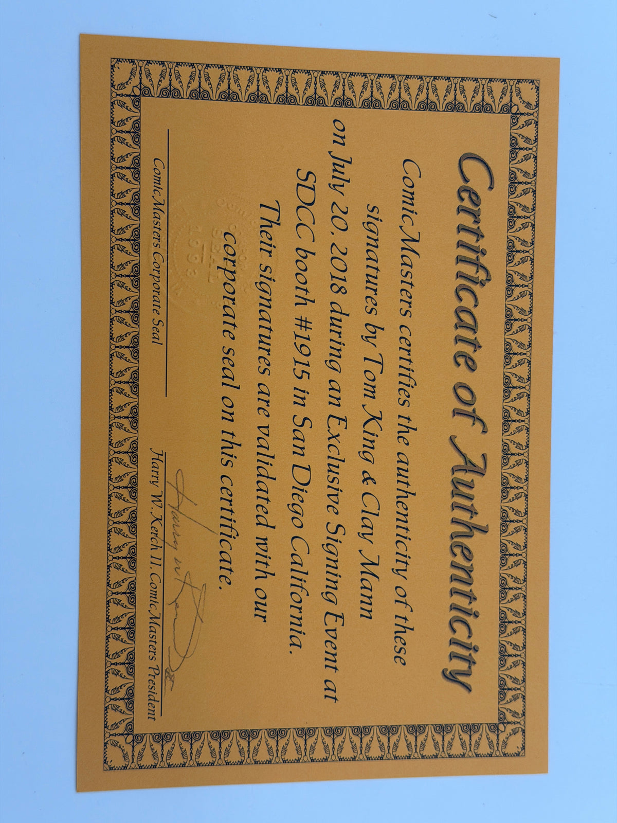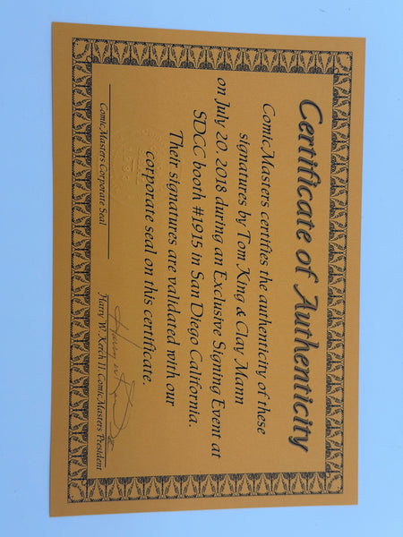 This comic is signed on the front cover by Tom King and Clay Mann.